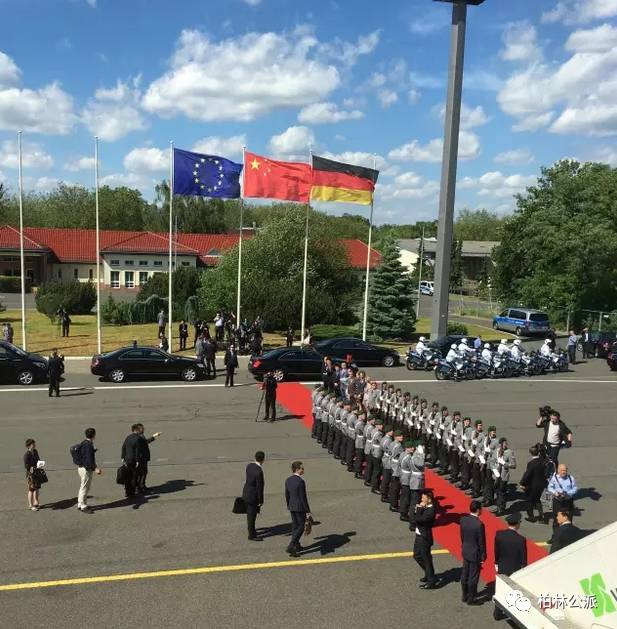 中国驻德国大使史明德和柏林市长米夏埃尔·米勒(MichaelMüller)出席机场欢迎仪式